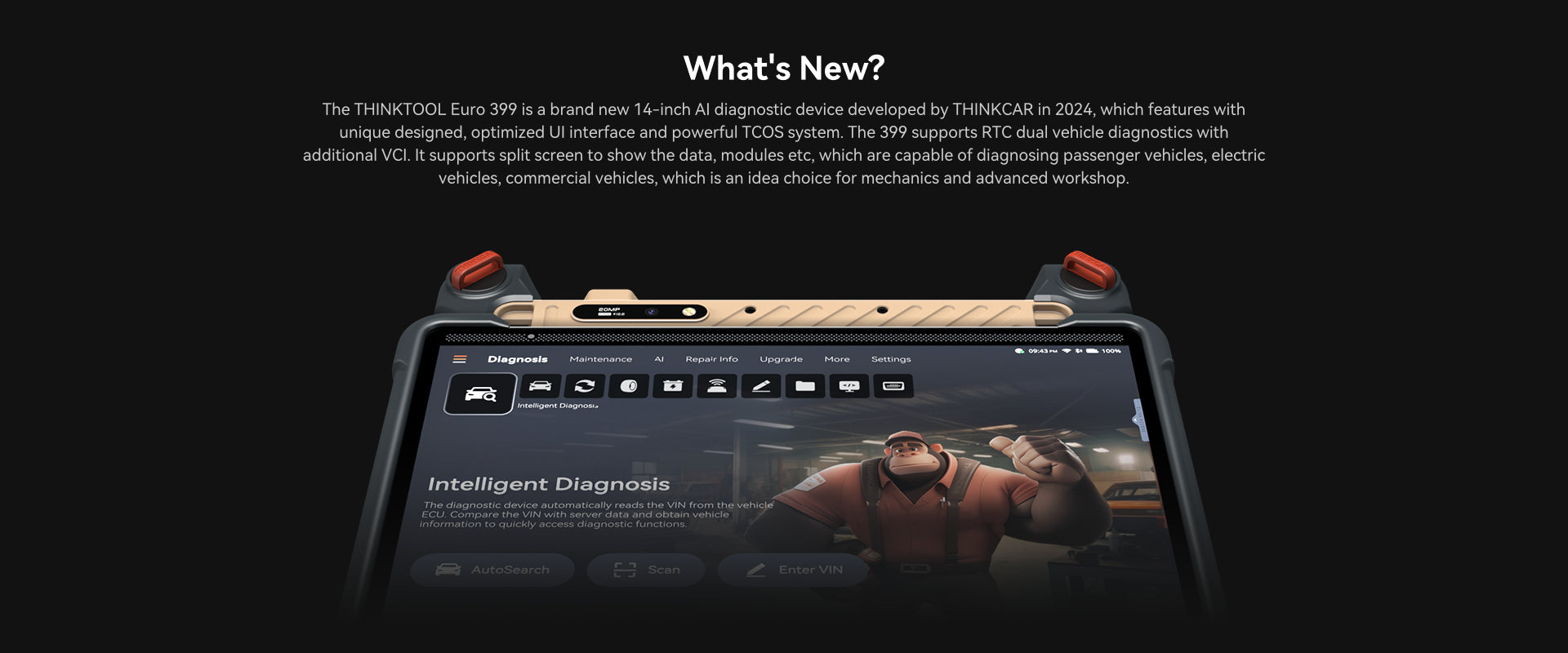 With its AI-powered technology, advanced diagnostic capabilities, comprehensive online functions, and robust construction, the THINKTOOL Euro 399 sets new standards in professional vehicle diagnostics. Perfect for workshops that value efficiency, precision, and intuitive operation.